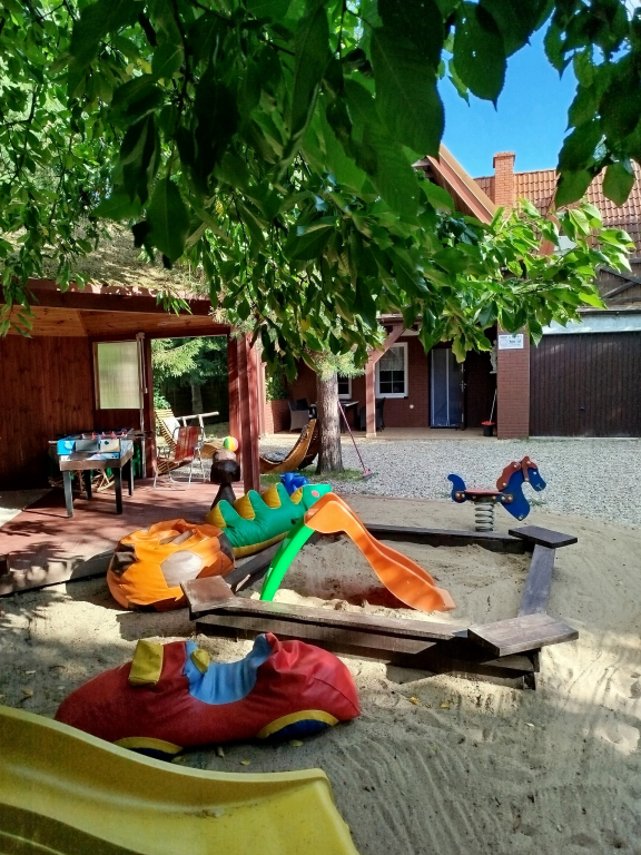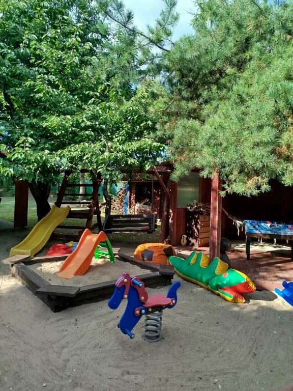 sypialnia 2osobowa łóżko małżeńskie, sypialnia 3-osobow kanapa dwuosobowa i jednoosobowa sypialnia 2-osobowa kanapa Możliwość skorzystania z łóżka polowego. Łazienka z natryskiem, wanną i w.c.Samochód można zaparkować na zamkniętej, ogrodzonej posesji o powierzchni 10 arów, dookoła wysokie drzewa, dużo zieleni, miejsce na ognisko. Domek przyjazny dla rodzin z dziećmi, plac zabaw, zjeżdżalnia, piaskownica, zabawki i gry edukacyjnei.Dzieci maja zadaszoną wiatę mininprzedszkole stolik,zabawki a dla starszych dzieci piłkarzyki i gry .Domek posiada wyjątkowy klimat, gdzie zapraszamy rodziny z dziećmi, małżeństwa,pary, znajomych oraz oczywiście seniorów.