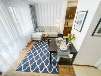 Apartament o powierzchni 37 m² został urządzony z myślą o komforcie naszych Gości. Znajdziesz tu: