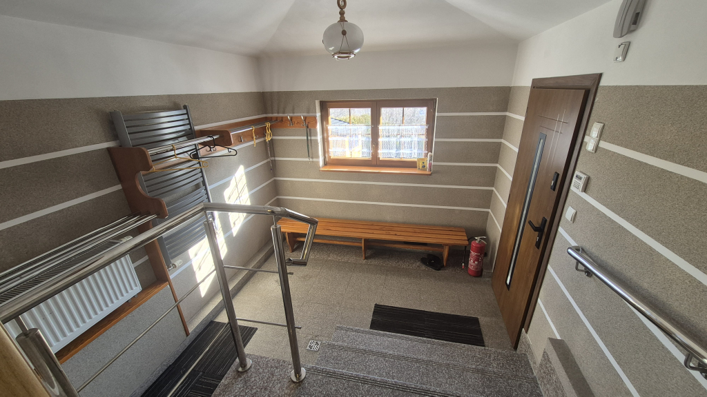 - obszerny przedsionek z możliwością przechowywania sprzętu narciarskiego, rowerów, wózków itp. (dodatkowo istnieje możliwość bezpłatnego udostępnienia posiadanego przez nas sprzętu rekracyjnego i sportowego jak; rowery, narty itp),